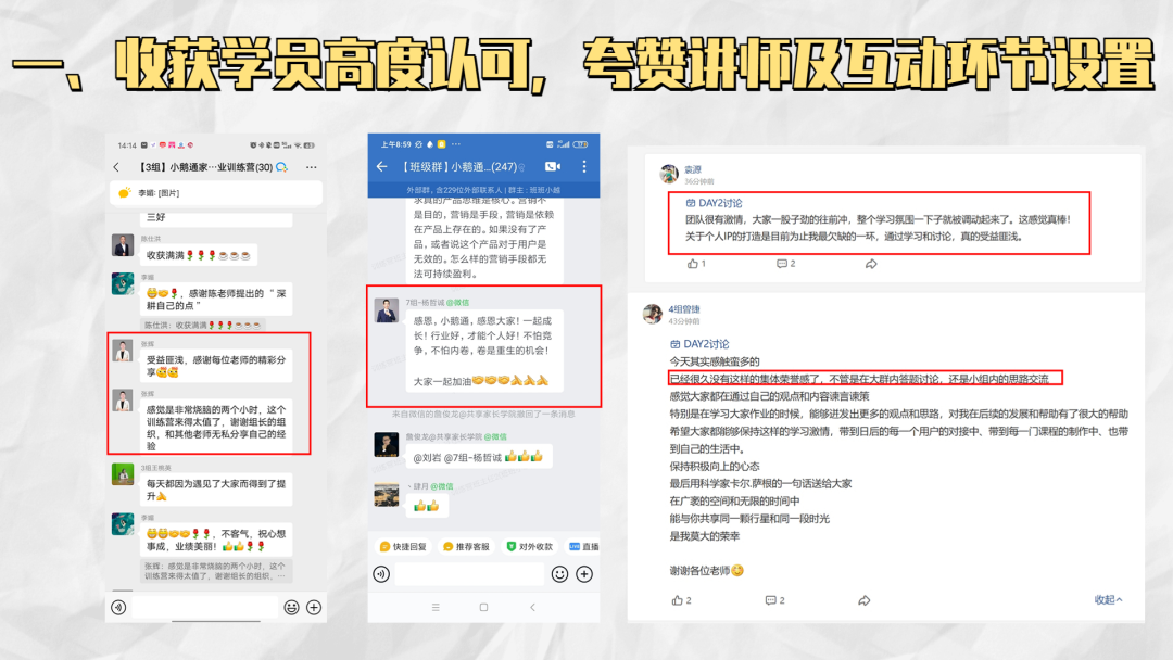 越来越多家庭教育行业小伙伴,在训练营中找到营收突破的新思路,通过几天的高强度互动学习,学习成功案例并应用到自身实操上。