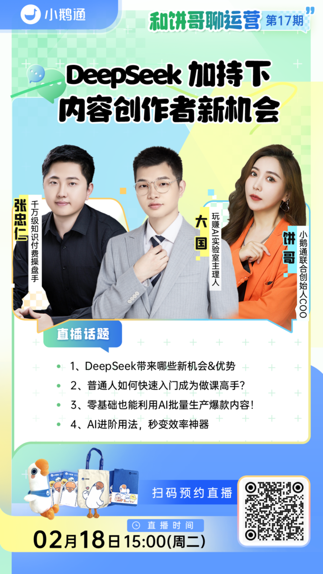 A.接触小鹅通很早,真正用起来是在2023年左右。当时我们在做运营向AI转型的节点,策划了全网第一场“AI式运营人成长大会”线上小峰会。因为视频号直播需要一些资质审核,叶檀财经的七哥推荐我们直接用小鹅通挂视频号售卖产品,我们就购买了小鹅通服务。