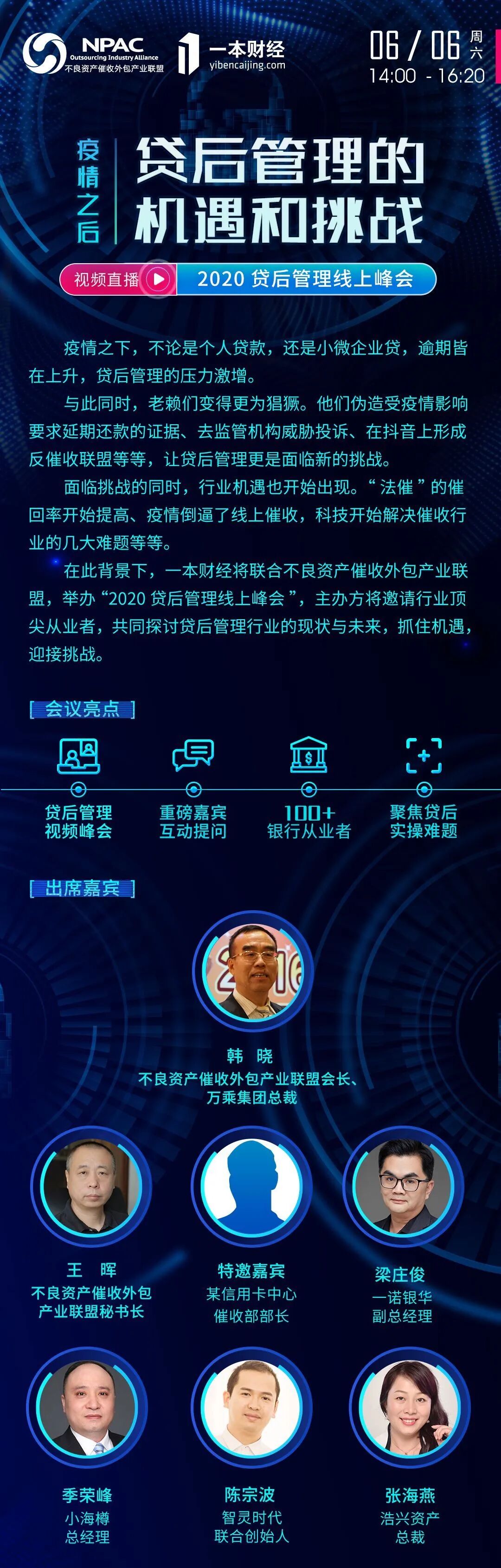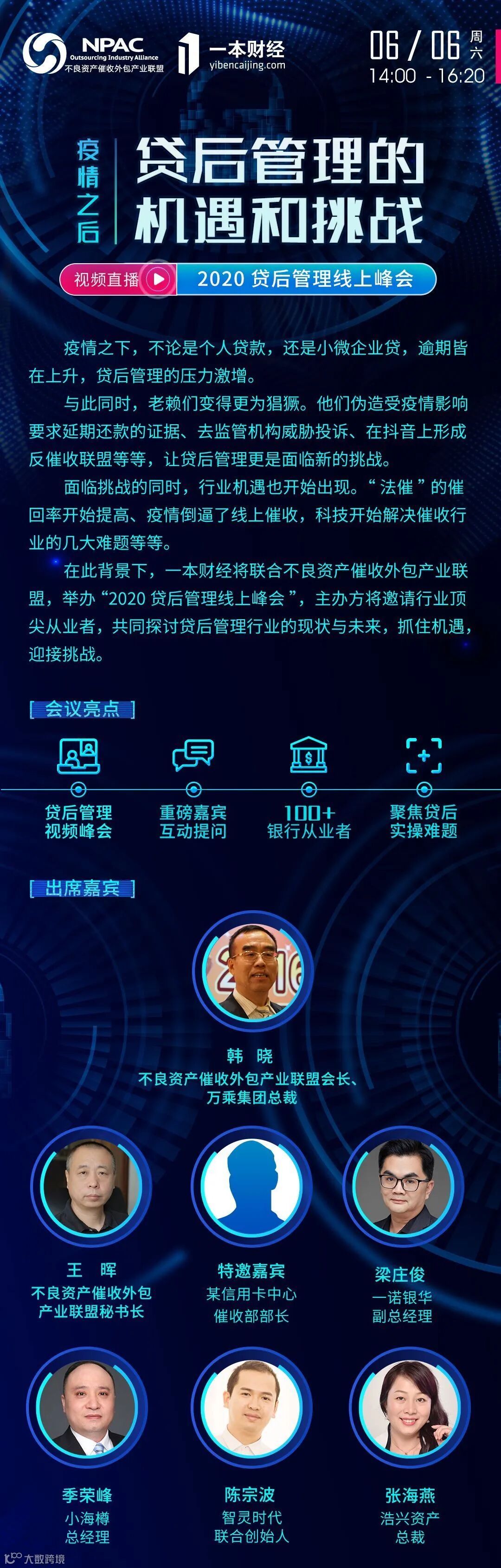 在6月6日一本财经与不良资产催收外包产业联盟联合举办的2020贷后管理线上峰会上,资深行业从业者将对这一问题给出答案。