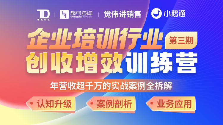 为了让更多此前错过的朋友能够顺利跟车,现在,第三期「企业培训行业创收增效训练营」正式开启招生啦!欲报从速!
