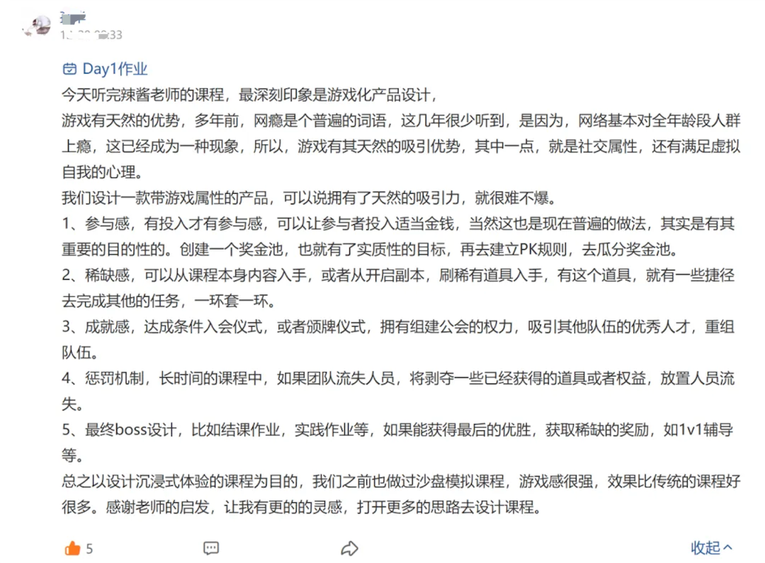 面对企培行业当下面临的痛点难题,大家在营内激烈讨论,共同探讨如何通过线上化的方式,提升企培对于企业的价值作用,突破当前营收困境。不信你看大家的作业和群内互动: