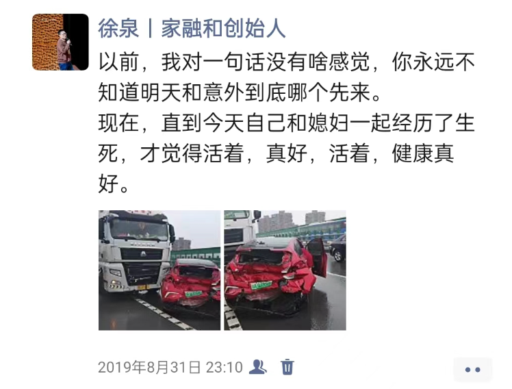 很快,我迎来了创业的契机。那是2019年,也是我跟我媳妇婚前,我们经历了一场大的车祸。这次意外,成为了我开启幸福创业咨询和陪跑的一个根本原因。