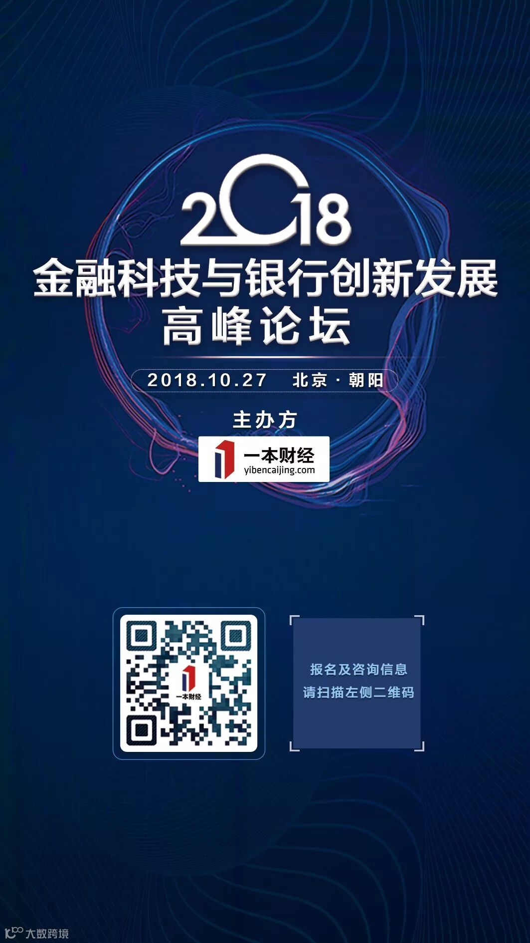 10月27日,一本财经将于北京举办“2018金融科技与银行创新发展高峰论坛”。