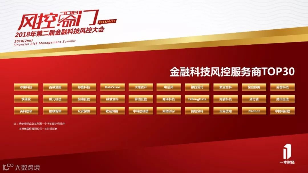 金融科技风控服务商TOP 30获奖企业: