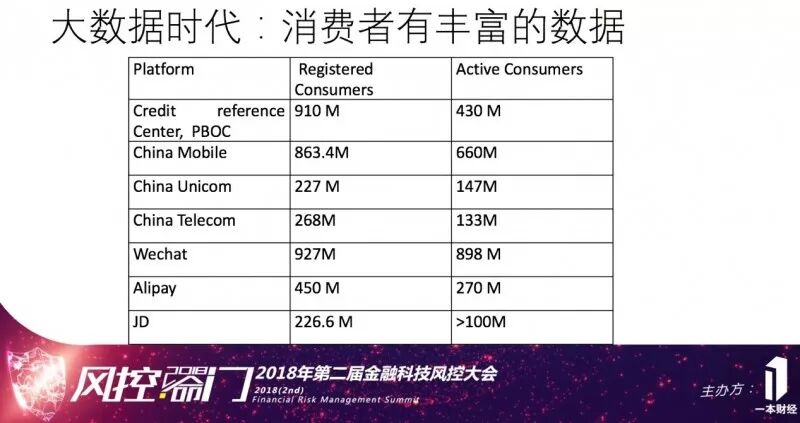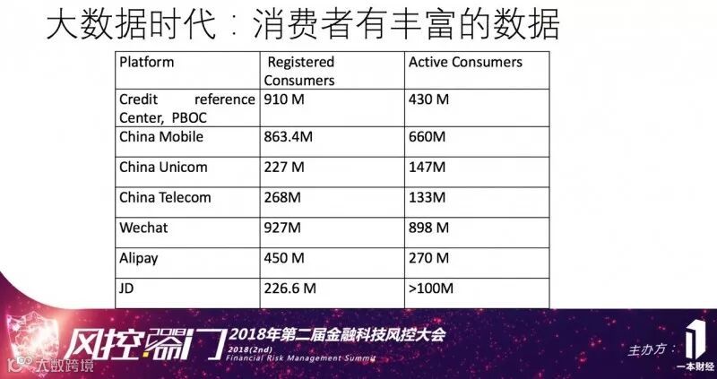 但国内还是有很好的机遇,我们有很多丰富的非信贷信用数据。比如电信数据、支付数据、社交数据、电商数据、心理测量数据。