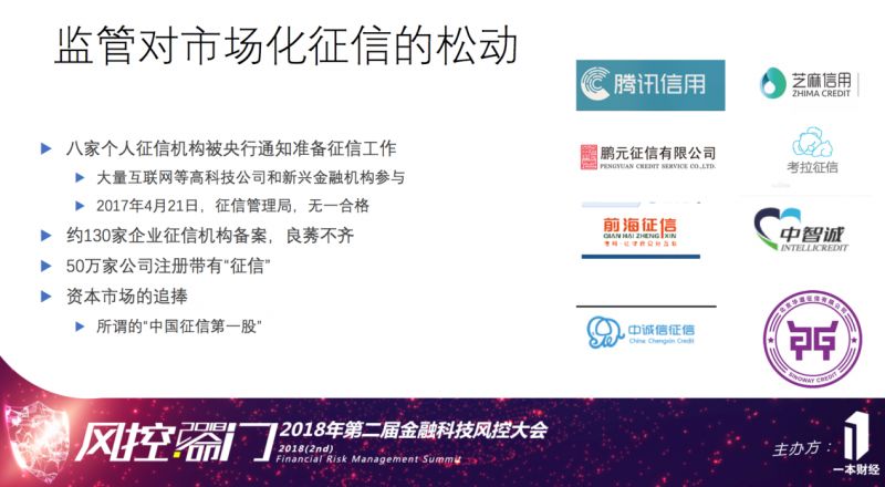 其次,从企业征信来讲,国家目前有130家企业征信机构备案,但这些机构都比较弱小。整个社会,也有50万家公司注册名称具有征信的字眼。