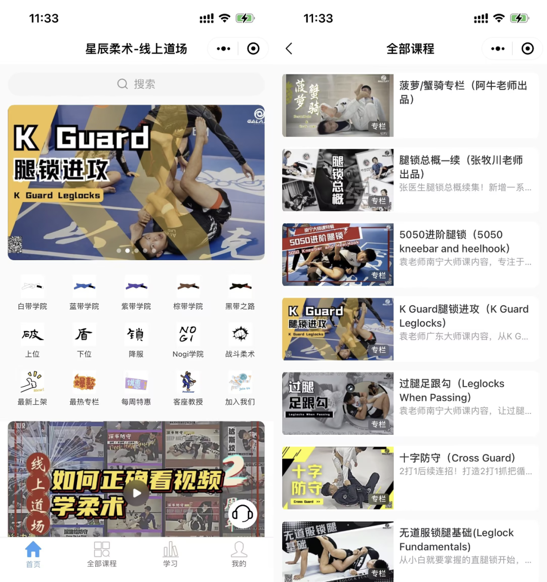 因此很多巴西柔术爱好者,都需要有一些线上视频教学来补充自己的技术。所以「星辰柔术」2020年开始搭建线上格斗教学平台。