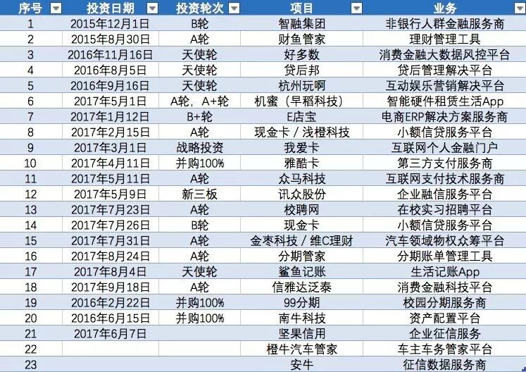 △ 蚂蚁金服在金融领域的投资布局,数据来源:企名片