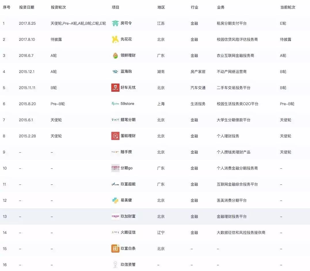 而玖富的投资,几乎涵盖了所有的场景分期。医美、教育、农村、3C等等,不愿意落下一个风口和机会。