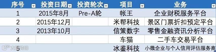而挖财投资了二手车交易平台“车猫金融”,景区门票折扣预定平台“米帮科技”。