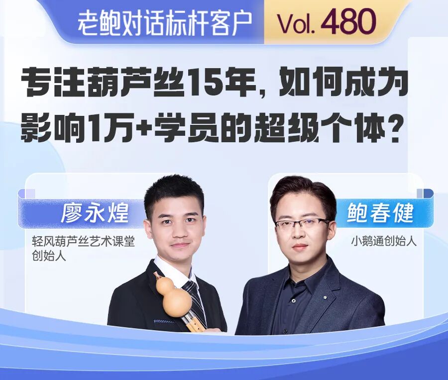 客户介绍:老鲍对话标杆第480期,邀请了轻风葫芦丝艺术课堂创始人——廖永煌老师