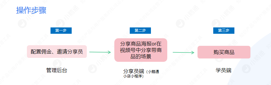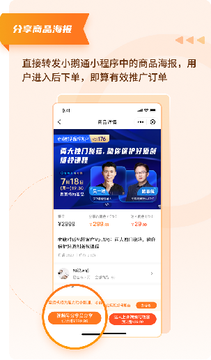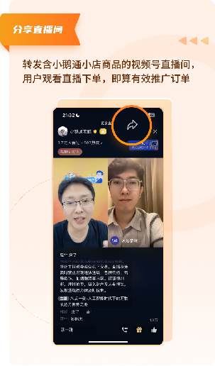 分享员只要进入“小鹅通小店”小程序,或商家的直播间,把对应的商品海报和带小店商品的直播分享出去,促成订单就可以拿到佣金。