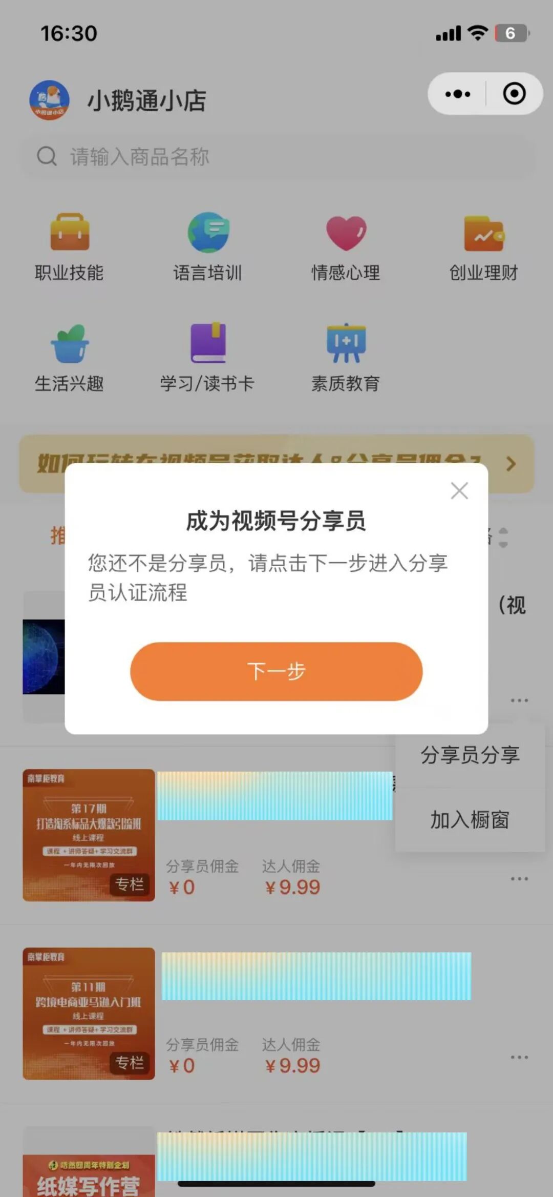 别着急,现在小鹅通的「视频号-小鹅通小店」现在推出了「分享员」功能!