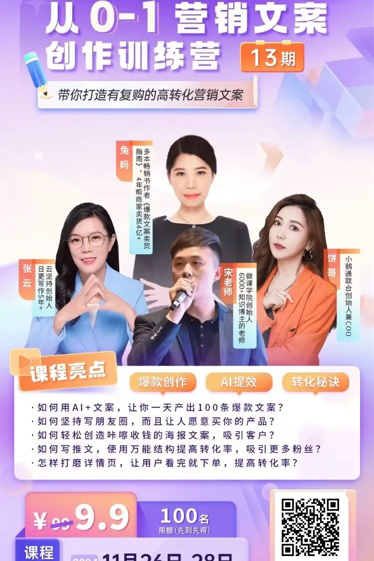 【知识博主IP打造】、【朋友圈运营转化训练营】、【从0到1营销文案创作】等训练营福利等着你!完课还可领超值干货包噢!