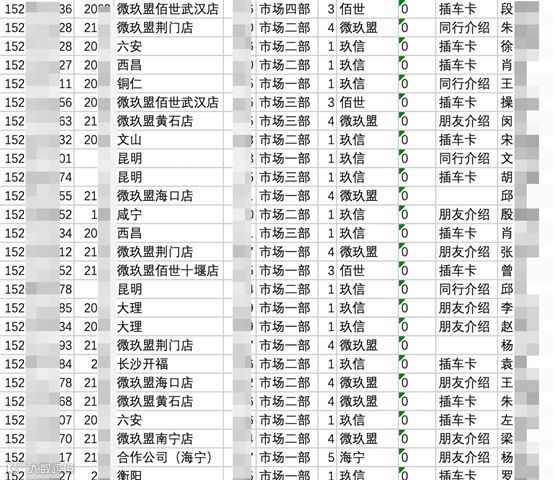 而第二份数据,孤狼号称是“玖融网的内部渠道数据”,显示了每一笔业务的客户来源、门店信息等内容。