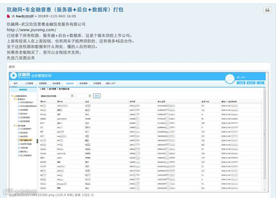 11月4日下午4点,黑客孤狼(化名)在暗网发布一个帖子,称拿下了汽车金融平台玖融网的所有权限。