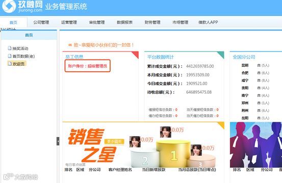 为了验证数据的真实性,他晒出了玖融网的业务管理后台界面。而他的登录身份,则是“超级管理员”。
