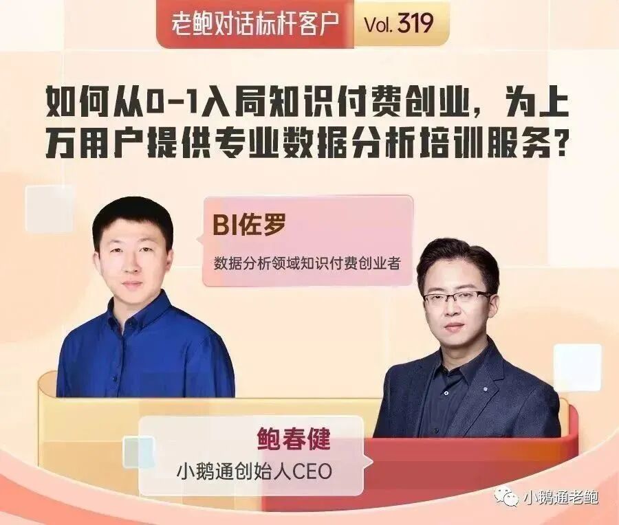 BI佐罗:其实我之前跟鲍老师说过,我们并不是特别着急去规划未来的事情。就像您刚才说的,我们要随缘。但是我们也注意到,有很多潜在的节省成本的机会。比如,我们可以更好地利用小鹅通的课程平台,其实也有很多想去学习的地方。所以,我们接下来的规划是在个人领域深入研究课程体系,让它变得更加的规范,更加的标准,让更多的人使用到。同时,我们也希望通过这里面积累的人才形成一个循环,服务到我们 ToB 的领域,能够更自由地运转,有更多好玩的东西。因为,我也是喜欢弄一个尝试新事物,所以短期内,就是把课程做好,把小鹅通应用的功能更多用起来。远期的东西,就是随缘。