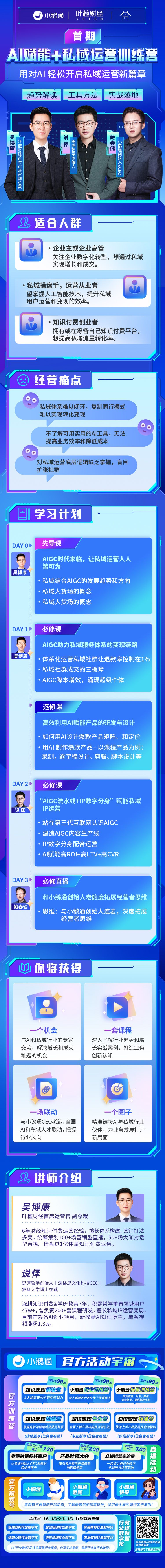 结合小鹅通众多客户的有效经验和实战案例,现在,「AI赋能+私域运营训练营」 正式火热招生中(限额100名,先到先得):