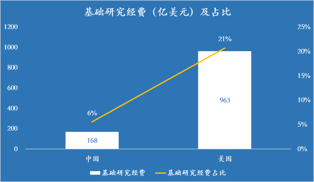 从基础研究经费总额和占比,以及从事基础研究的主体,中美之间的差距至少很难在短时间内缩小,很可能会越来越大。