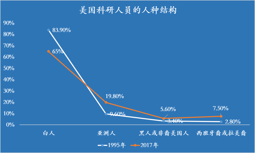 在人才激励方面,美国继承和完善了欧洲的同行评议机制,并广泛应用于科研经费分配和科研人才选拔。NSF 每年会有近2 万项新增和持续的资助活动需要进行同行评议,其价值评议系统是世界各国评审和资助创新性研究的主要参考准则。美国国立卫生研究院(NIH)60多年前就开始建立常规评审机制与特别评审机制并行的两级评审的同行评议体系,期间NIH 多次对其进行了研究和改进,致力于建设一个透明、规范和负责任的同行评议系统。美国高校系统则采取严格的同行评议制度推进“非升即走”的人才激励机制。“非升即走”制对美国学术场域的从业人员发挥了“良币驱逐劣币”的效应,即甄别出适合从事学术职业、选拔出符合本校需要的人。同行评议机制作为一种相对公平公正的良性制度设计,吸引了全世界优秀的科研人才开展基础研究工作。从1995年到2017年,美国白人在科研人员中的占比从83.9%下降到了65%,来自亚洲、非洲和拉丁美洲的科研人员占比大幅提升。目前中国在科技人才的激励方面还存在“唯论文、唯学历”等弊端,正在探索和建立以同行评议为基础的人才评价和激励机制。