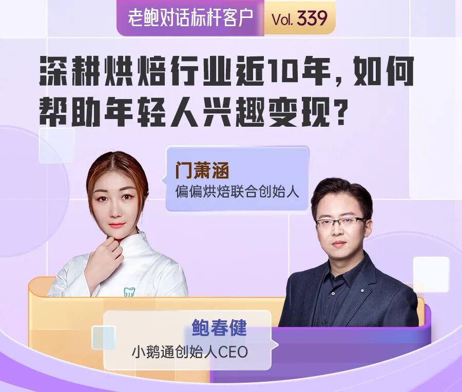 客户介绍:老鲍对话标杆第339期,邀请了偏偏烘焙联合创始人——门萧涵。她是高级西式面点师,健康管理师 ,匠享人生烘焙(偏偏烘焙)联合创始人,从事烘焙行业近十年。