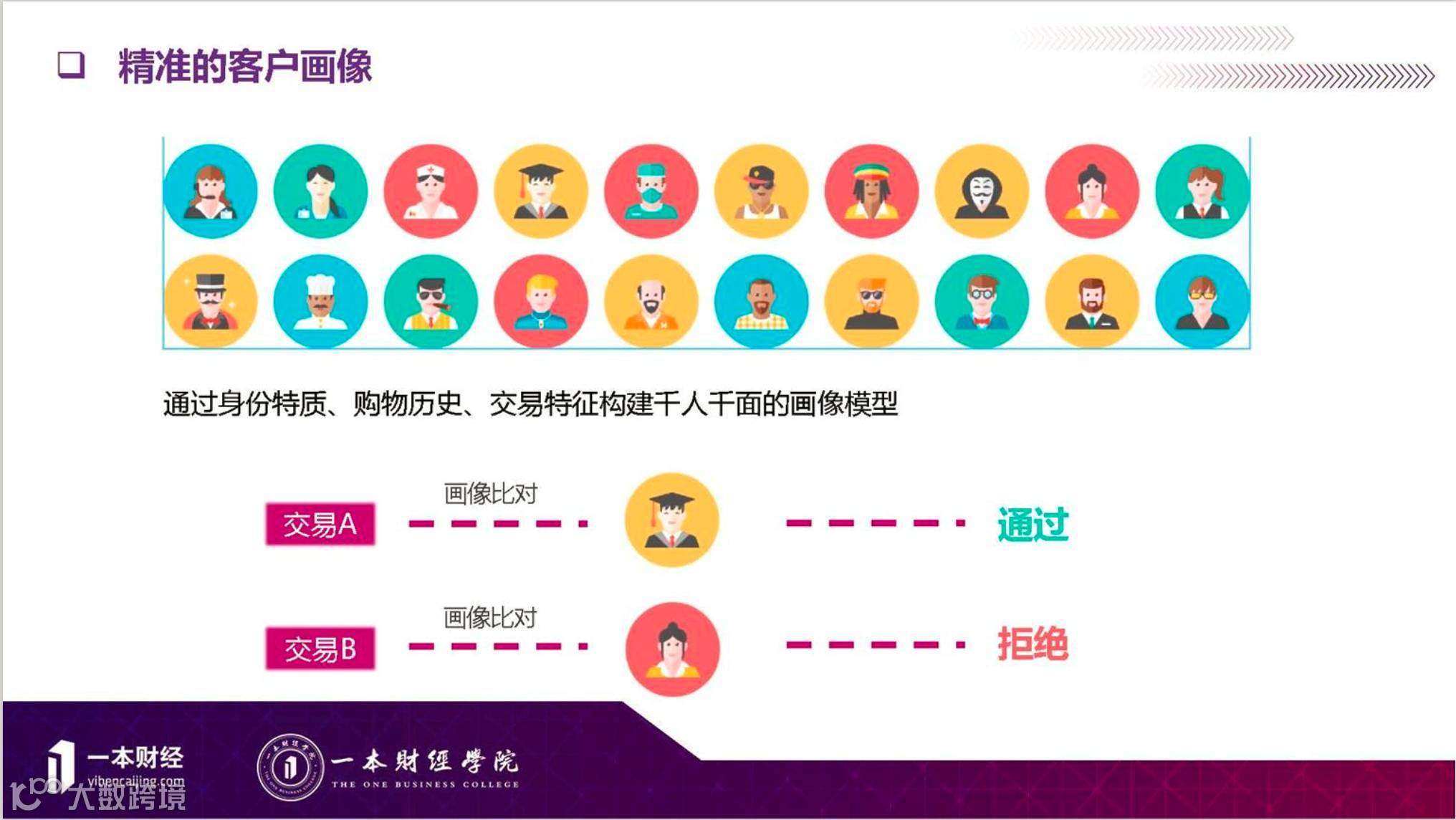 3 模型的方式,建立精准的客户画像,这被认为是最有效的,通过身份特质、购物历史、交易特征,构建千人千面的模型,可以根据交易进行画像对比,符合就通过。