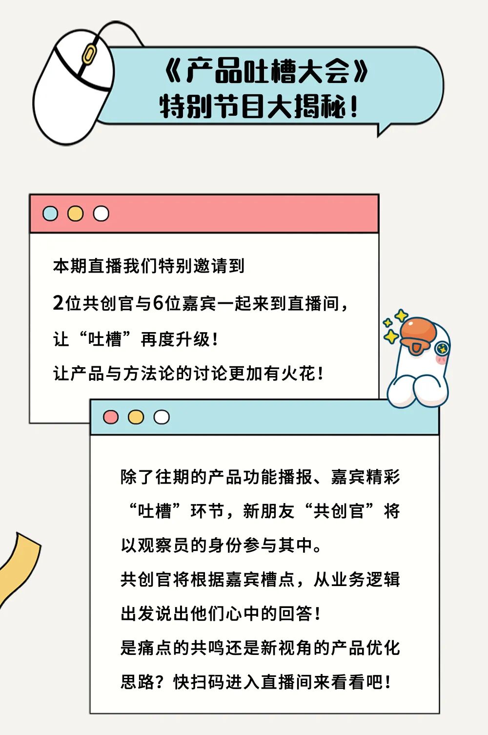 如果看到这里的你,也对产品有自己的想法,希望来到《产品吐槽大会》说出自己的思考,与饼哥和产研模块负责人一同交流拓展产品的一切可能性?
