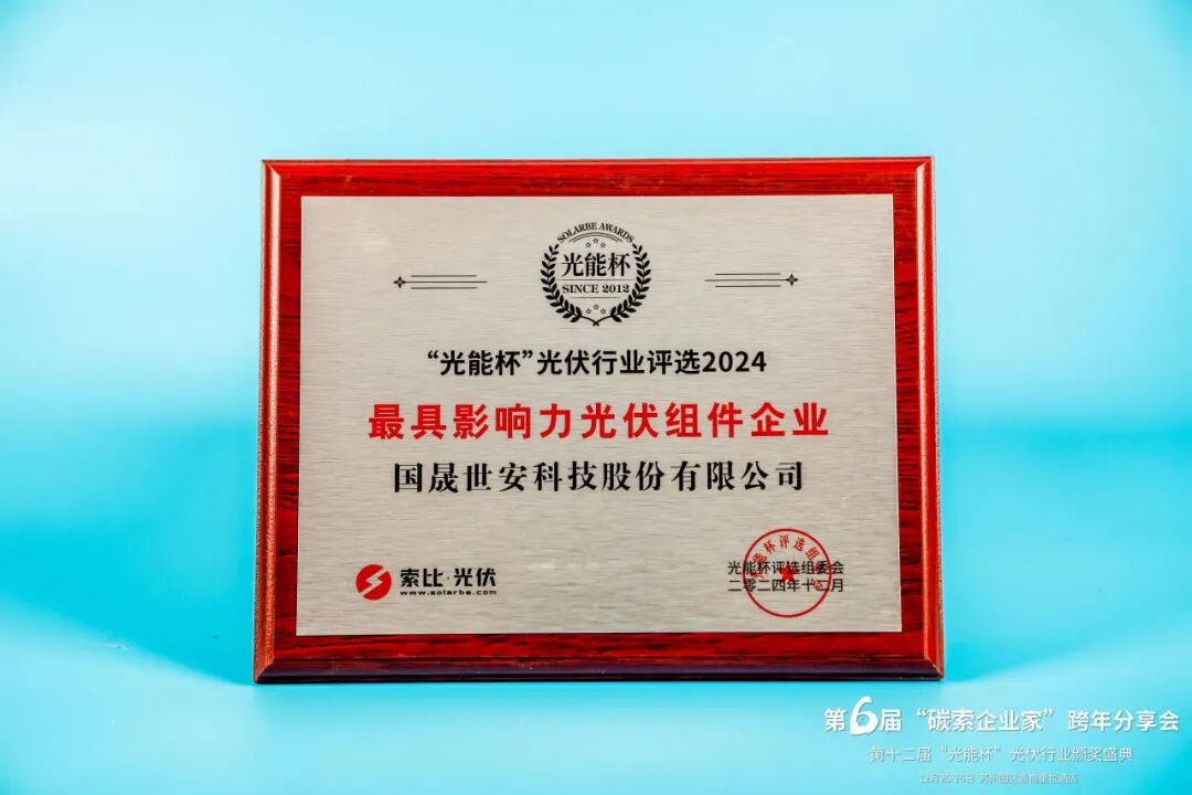 12月26日,由碳索新能、索比光伏网主办的2024年度第十二届“光能杯”光伏行业颁奖盛典在苏州举办。本届“光能杯”共有300余家企业参与评选,国晟科技凭借卓越的技术实力、出色的产品服务、优异的市场表现和良好的品牌影响力,从众多参评企业中脱颖而出,荣膺“最具影响力光伏组件企业”大奖。