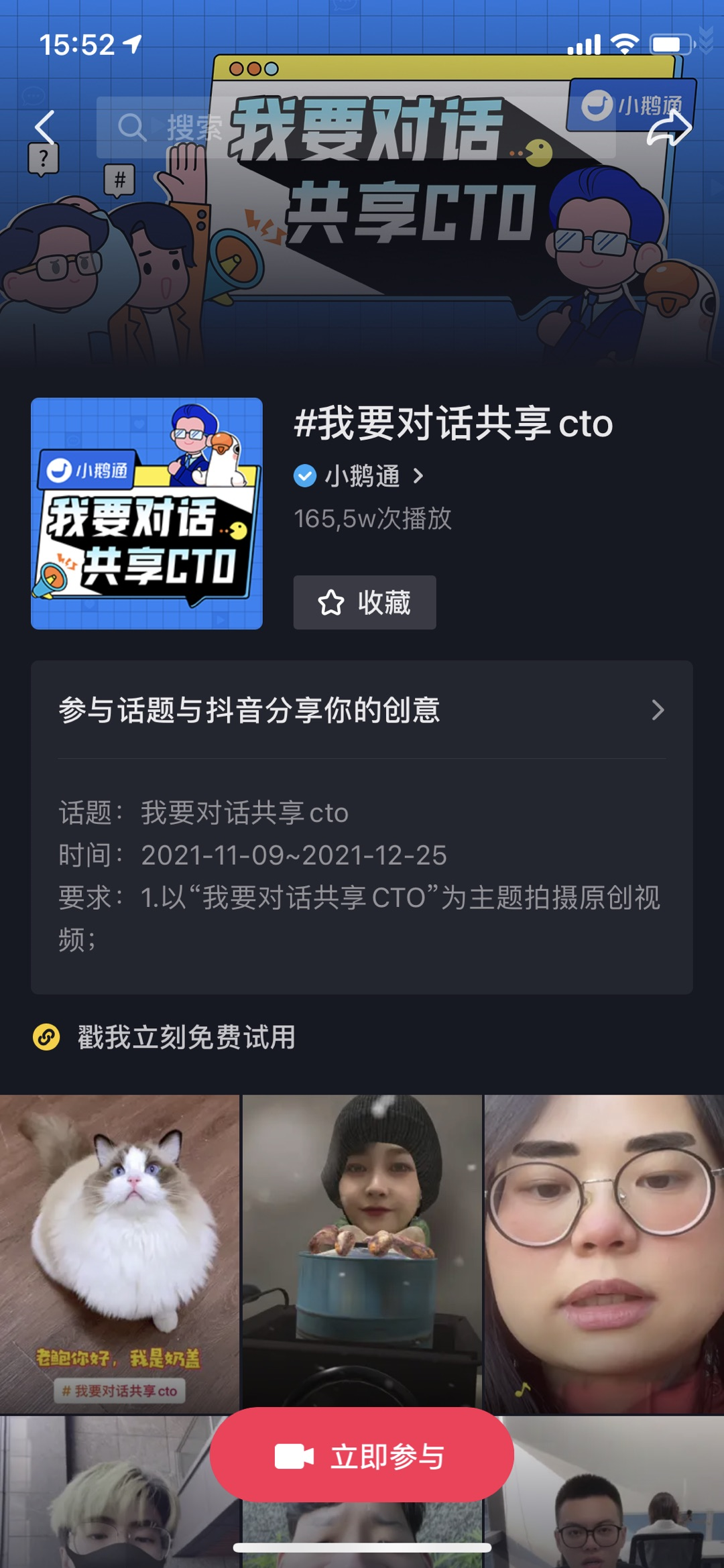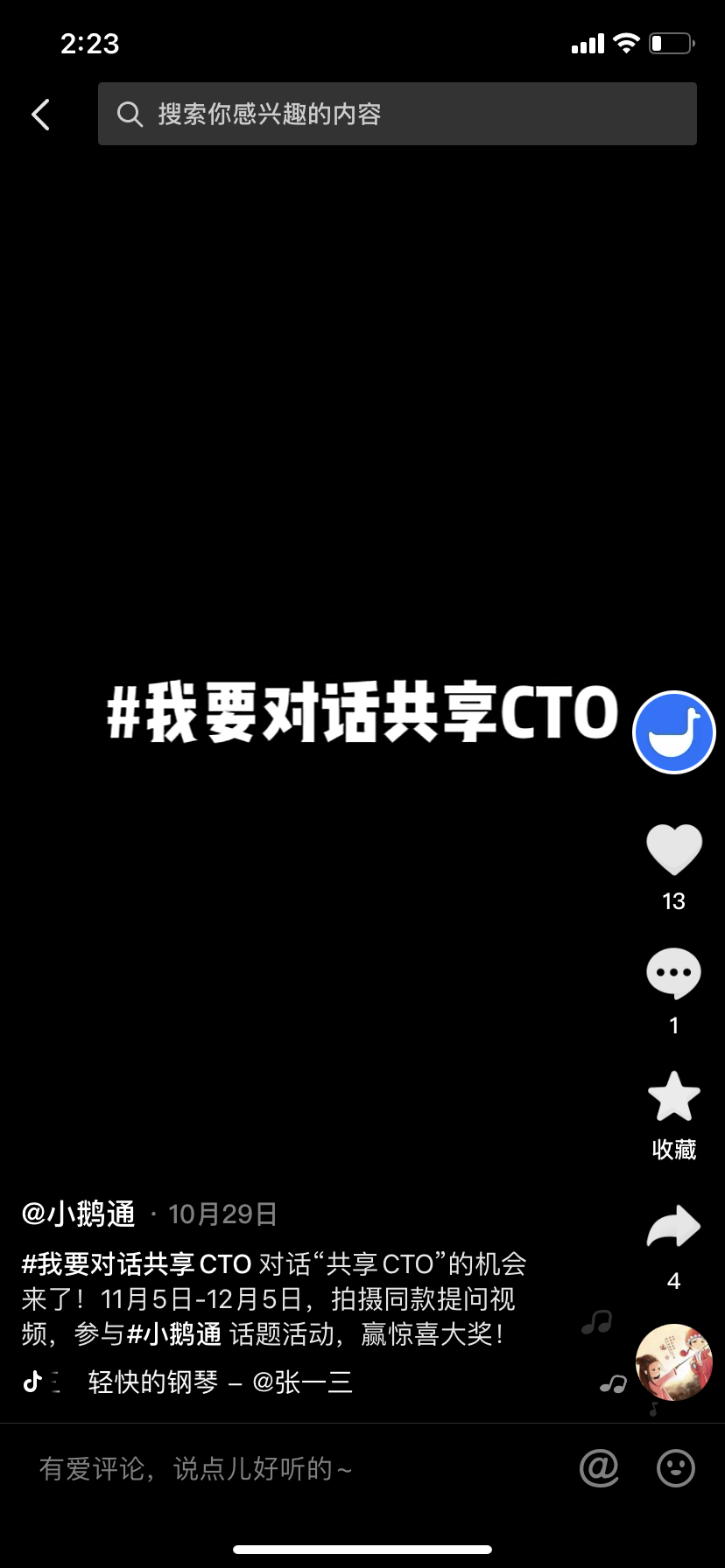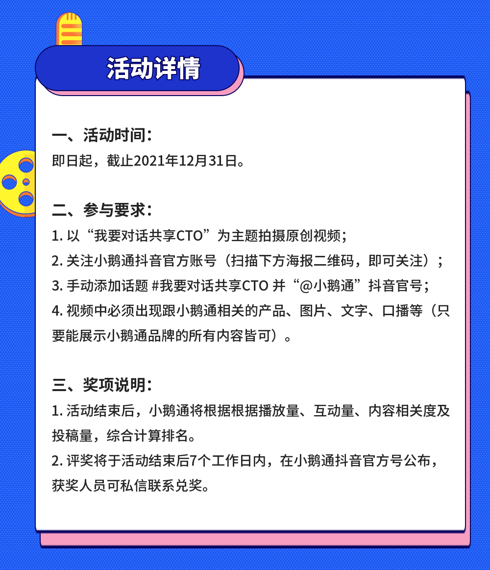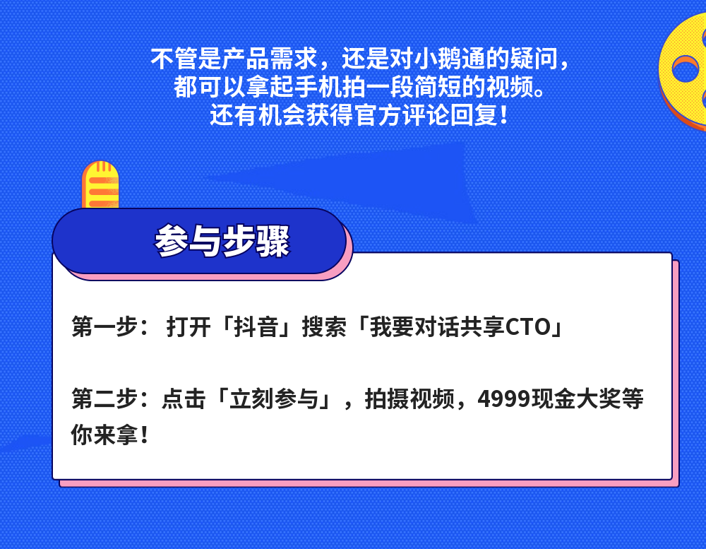 参与抖音话题#我要对话共享CTO,拍视频赢4999元现金大奖!