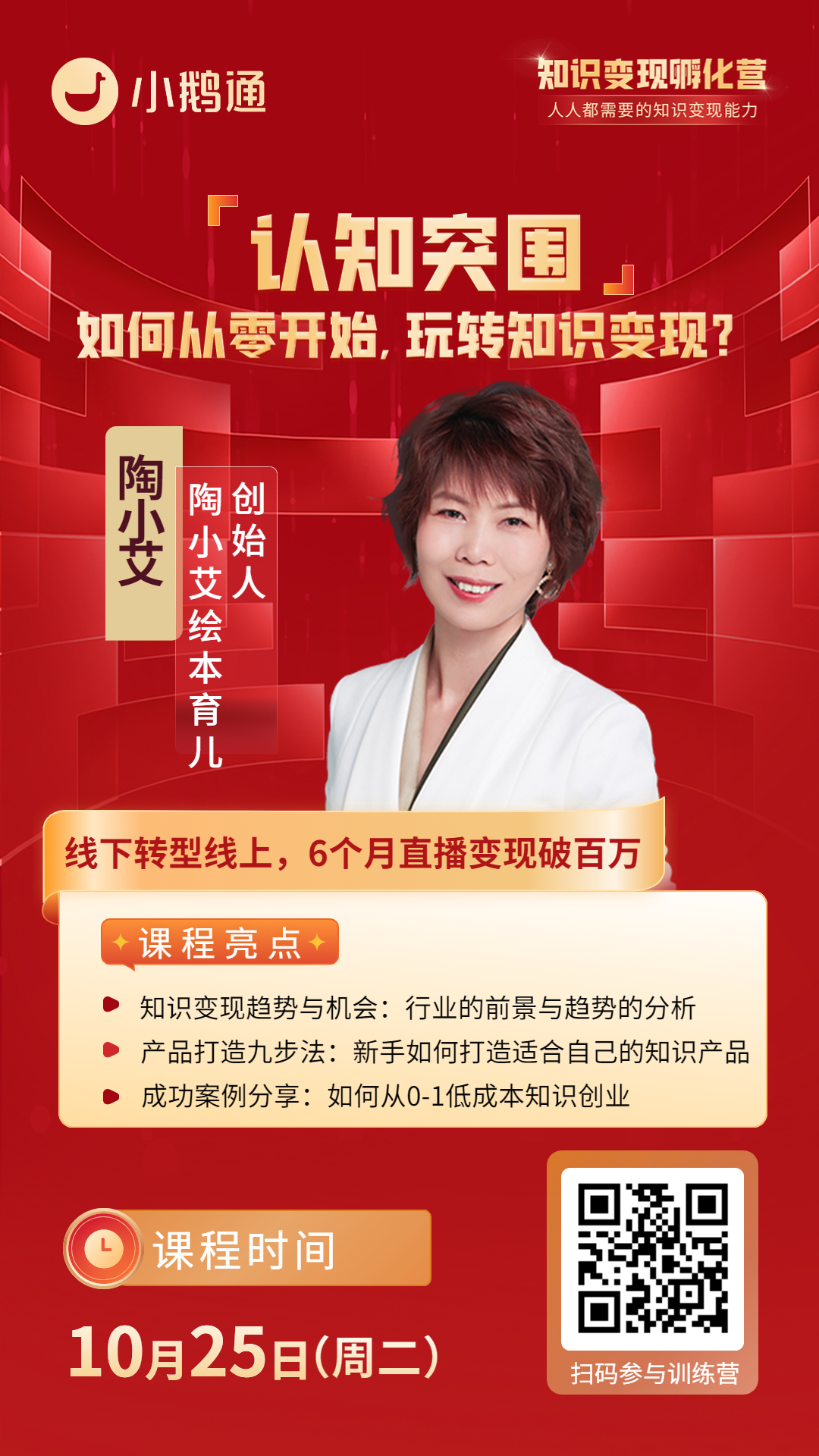 第一天,小艾老师将会剖析知识服务的行业趋势,通过9步实现知识产品的专业化。同时通过案例分析拆解兴趣爱好者以及线下门店如何快速实现知识产品落地。