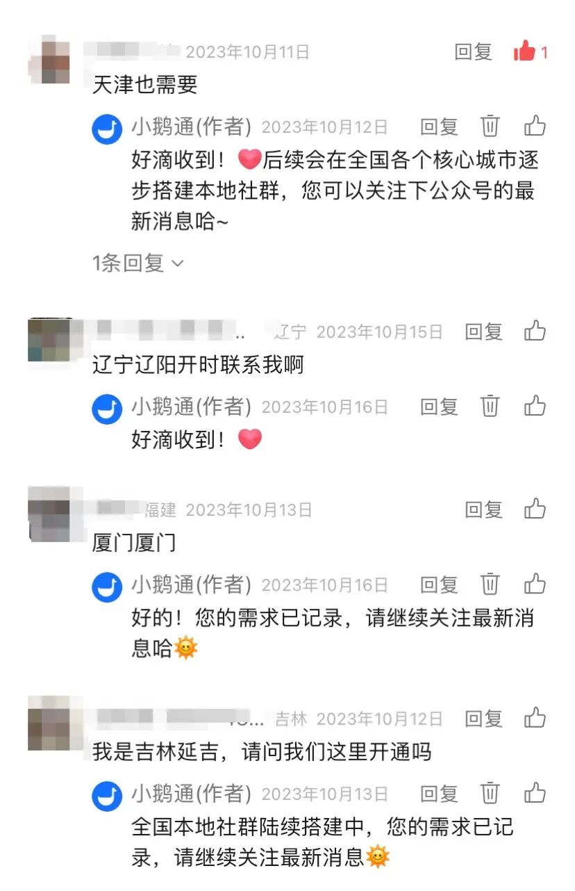 为此,我们在2023年下半年,和教练们推出了小鹅通的重点项目——本地社群,目前已经拓展了北京、深圳、上海、西安、杭州等20多个城市,深入各地帮助全国的创业朋友,贴身解决运营工具应用及资源链接的一系列问题。