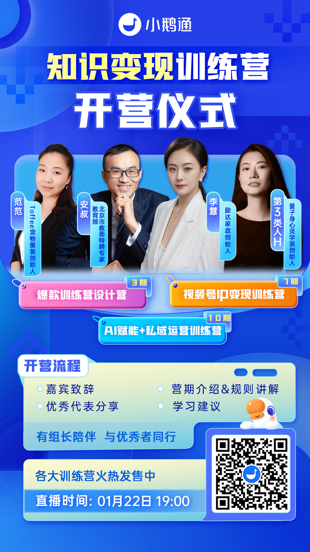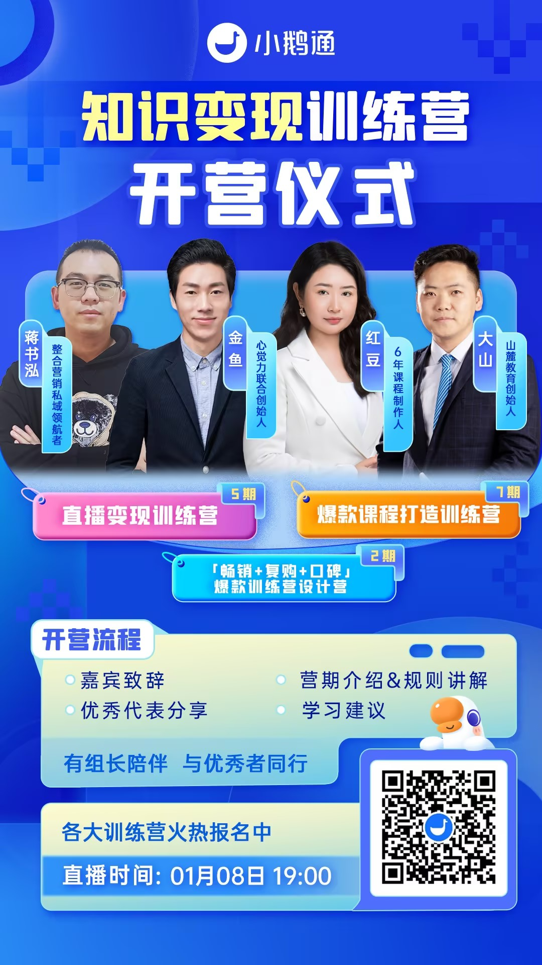 为了进一步接触创业者和运营者,教练们还参与了小鹅通多个官方的创新项目,例如优先带组小鹅通系列训练营,进行了开营分享,结识不同行业的知识从业者,获得了全新的合作新机遇。