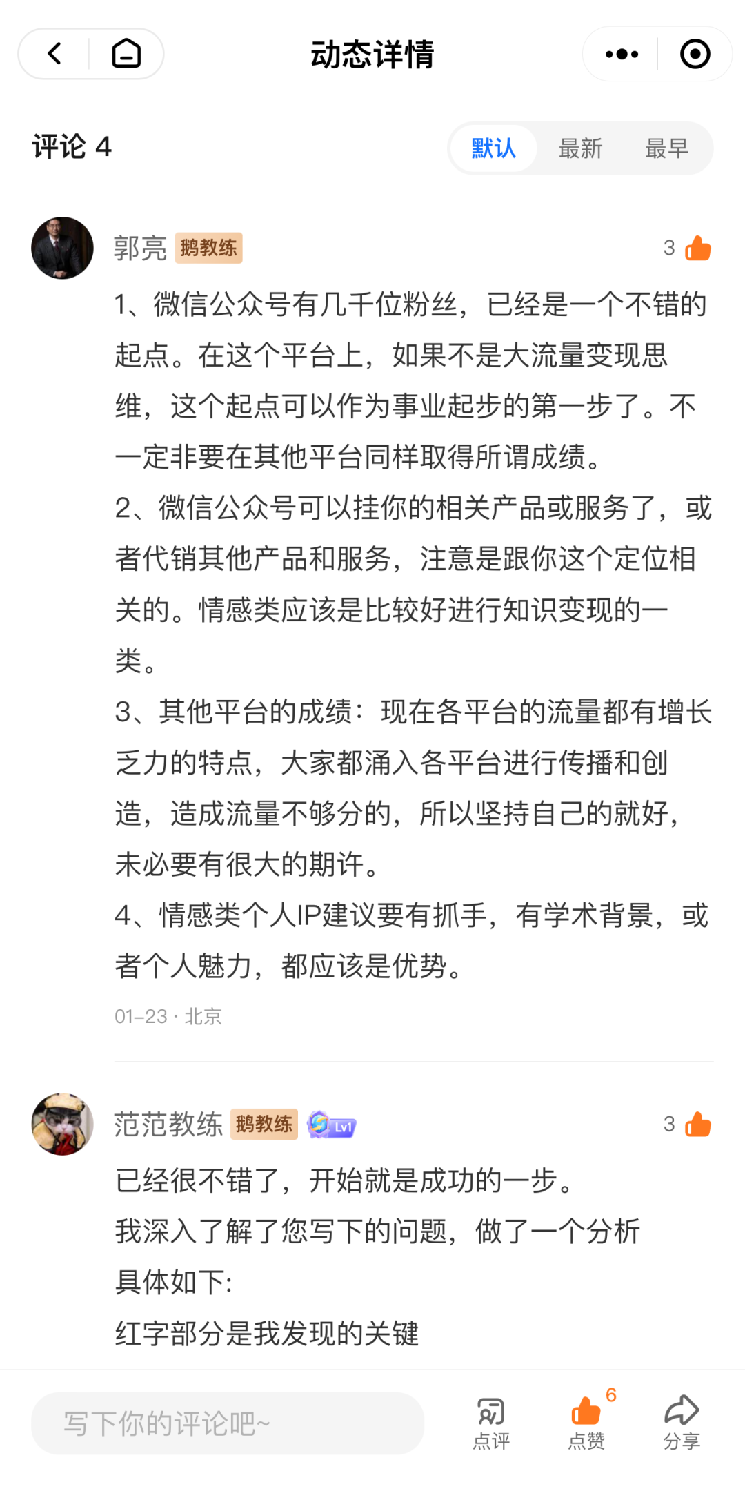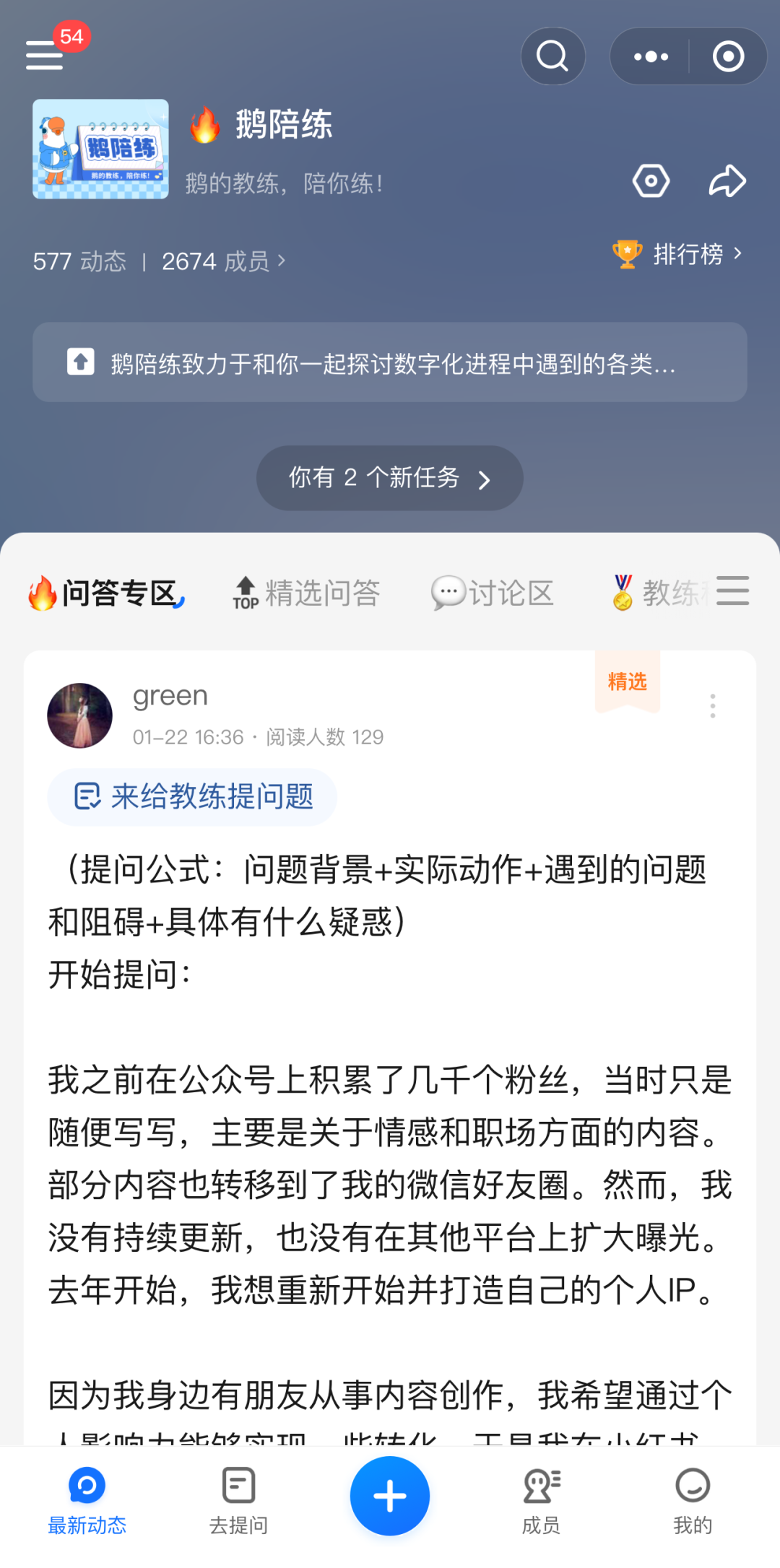 另外,考虑到大家还是需要实时和教练交流互动,我们还组建了一个线上问答社区——鹅陪练圈子,为所有关注运营的朋友们提供宝贵的线上资源和与专业教练共同探讨的场域。