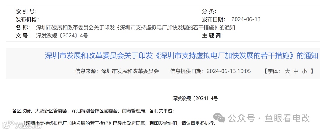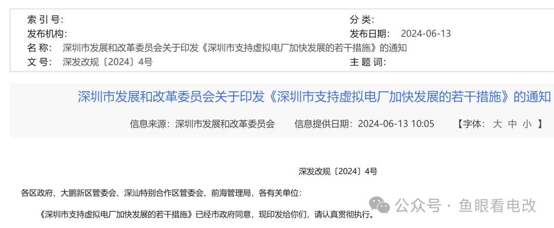 比如这份2024年6月发布的,深圳市发改委发布的《深圳市支持虚拟电厂加快发展的若干措施》的通知。