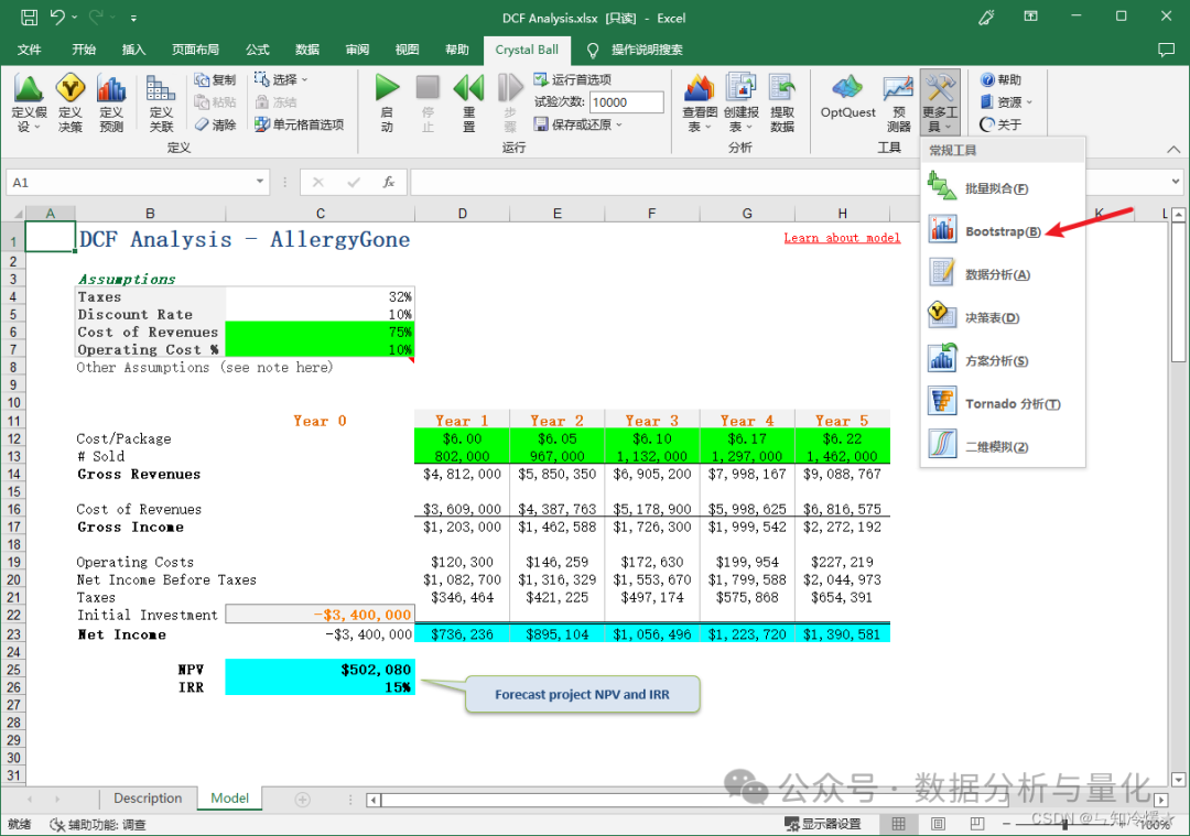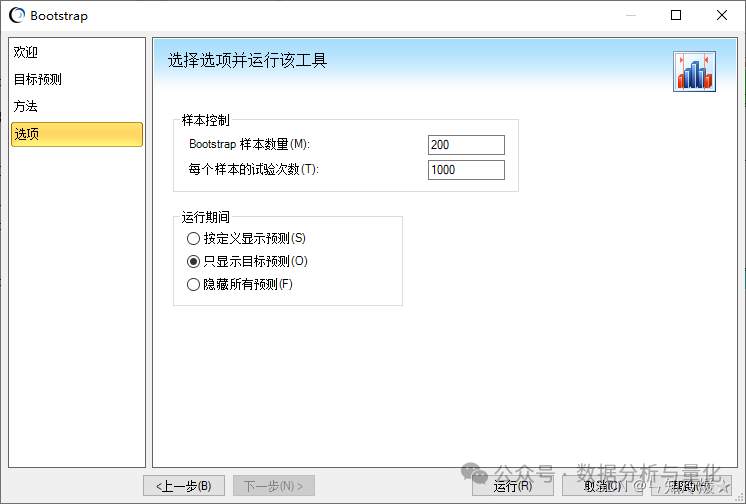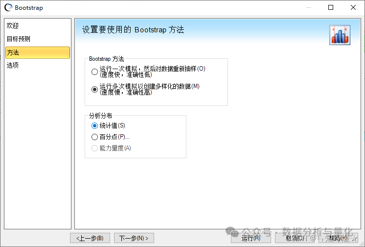 Bootstrap工具的工作原理是随机抽样预测数据,然后从每个抽样中创建统计数据的分布。用于估计预测统计的准确性。(就是看看预测得到的数据是否准确,拿这个工具进行测试)