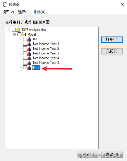 打开操作:在运行完一次模型后,在查看图表->敏感度图处可以看到相应的图。