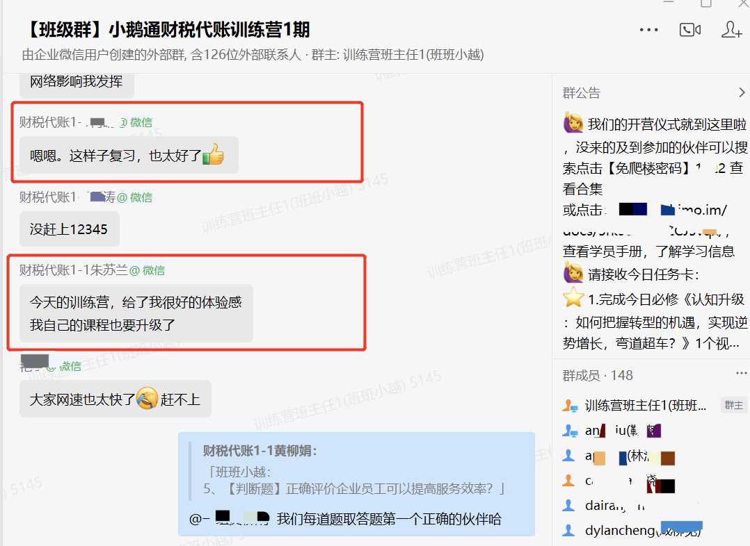 围绕财税行业如何进行获客增长,学员一进来的体验反馈也太好了,不信你看: