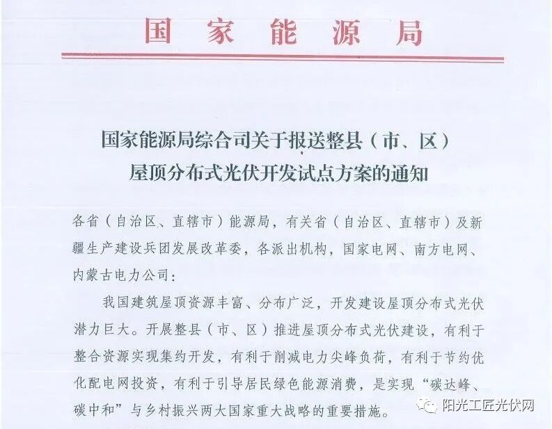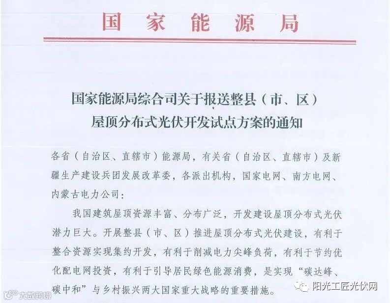 自2021年6月国家能源局综合司下发《关于报送整县(市、区)屋顶分布式光伏开发试点方案的通知》后,屋顶分布式光伏迅速在全国各地铺开。