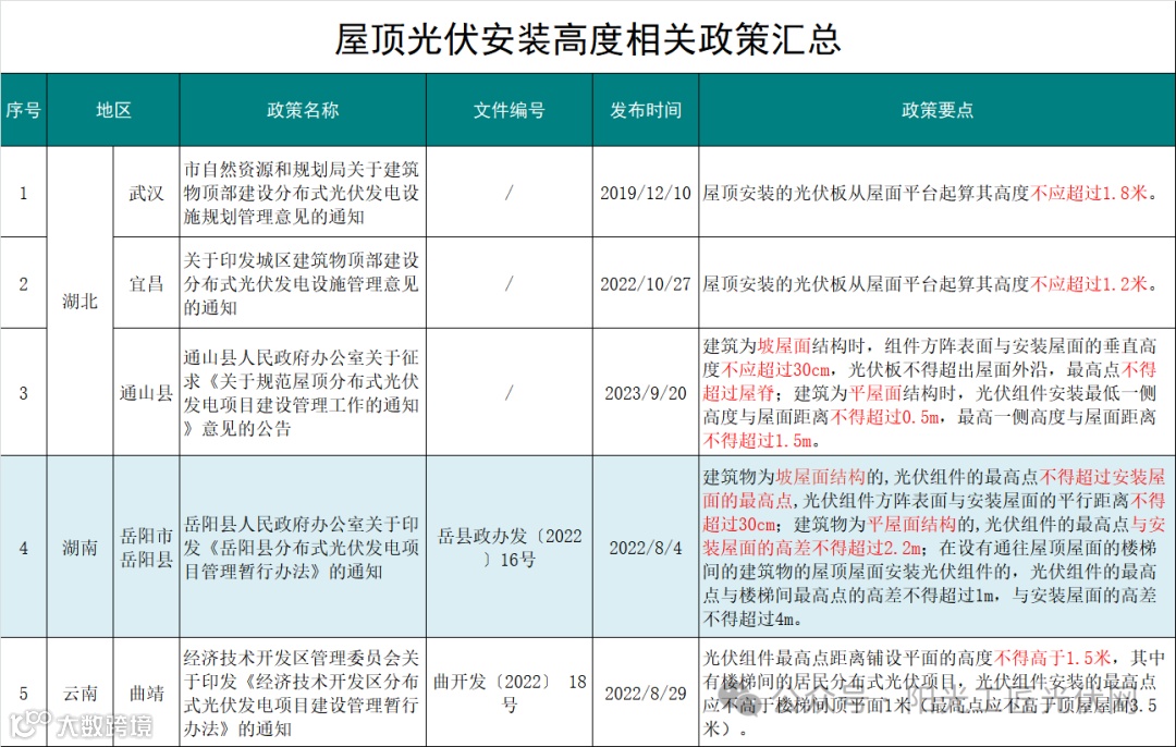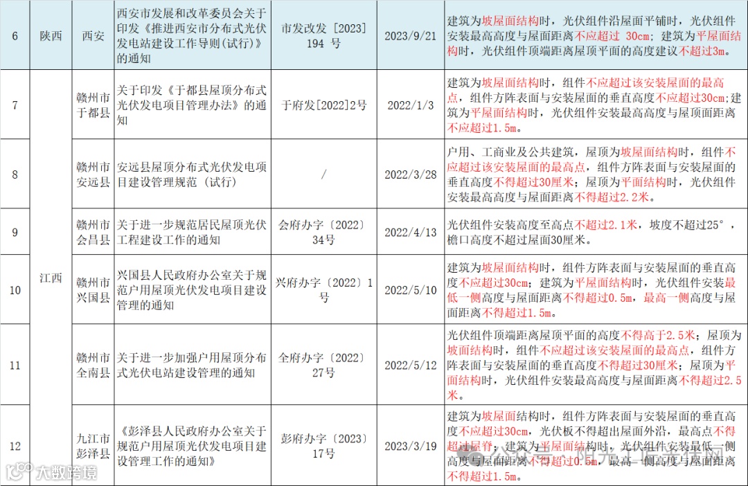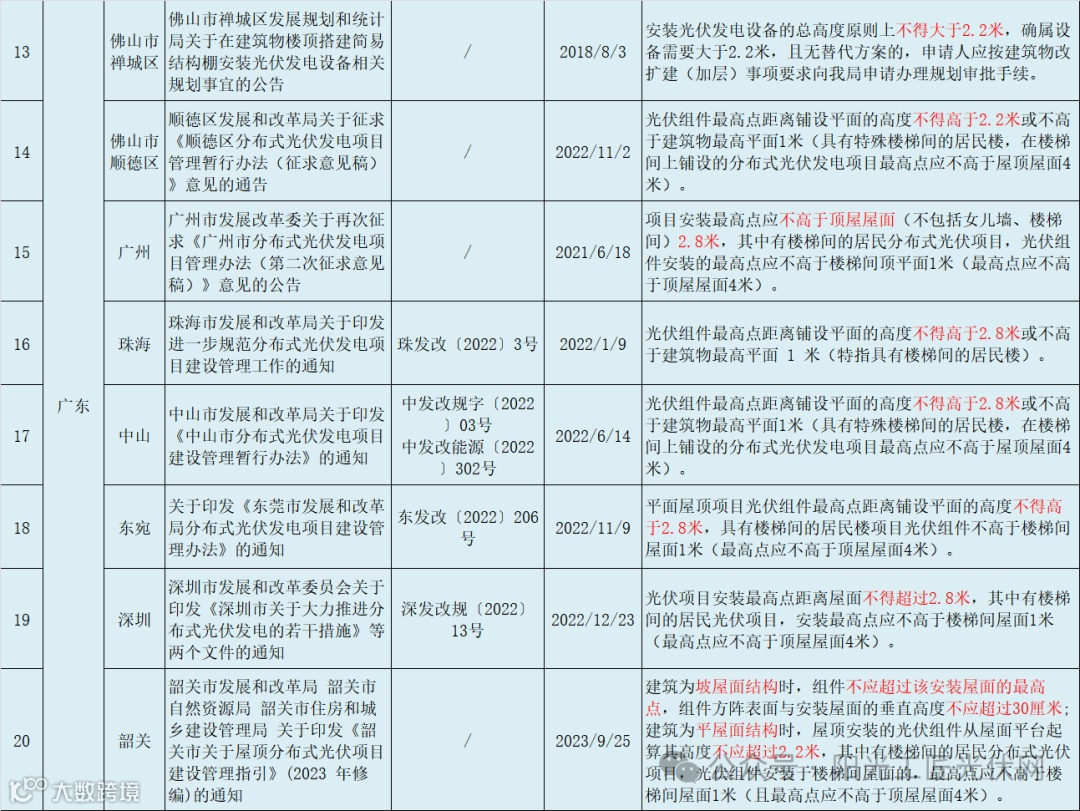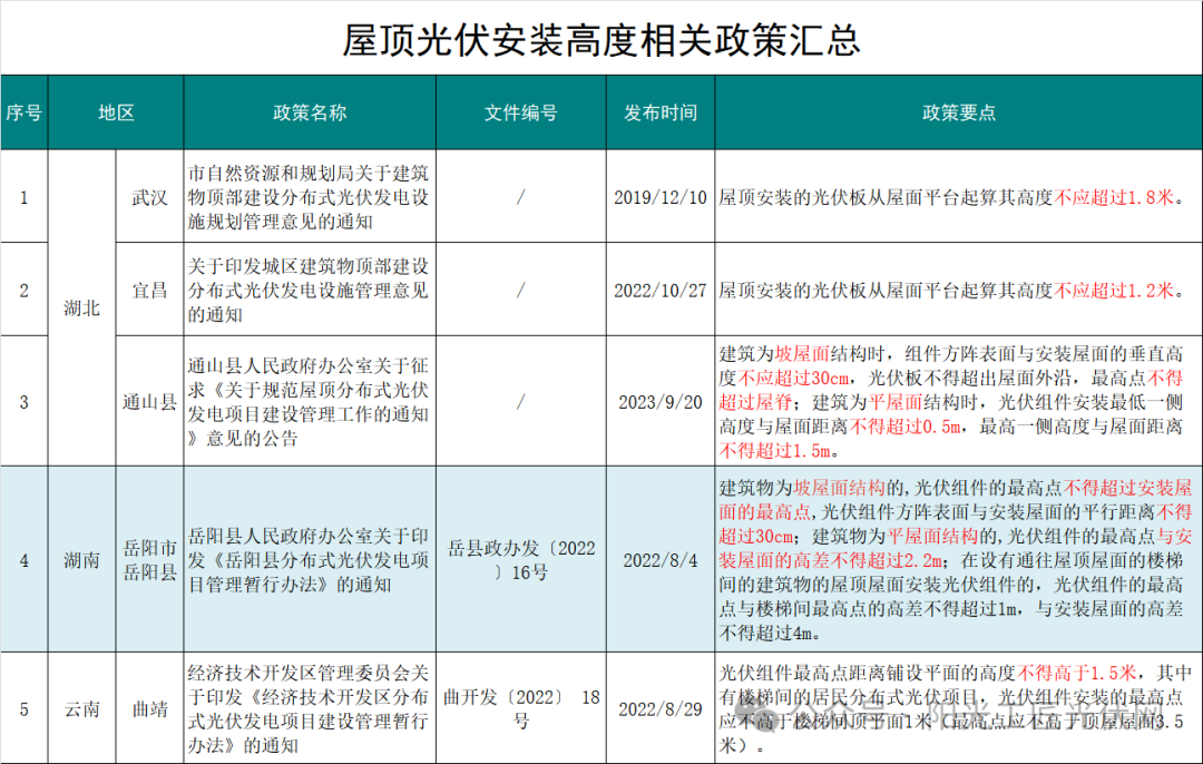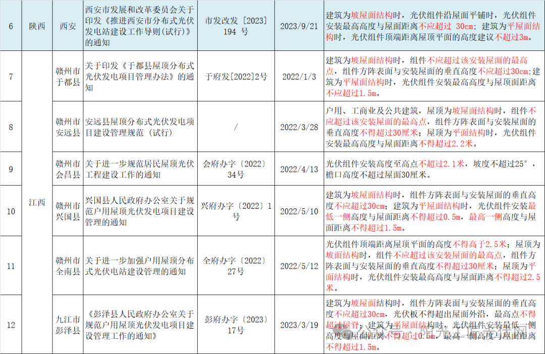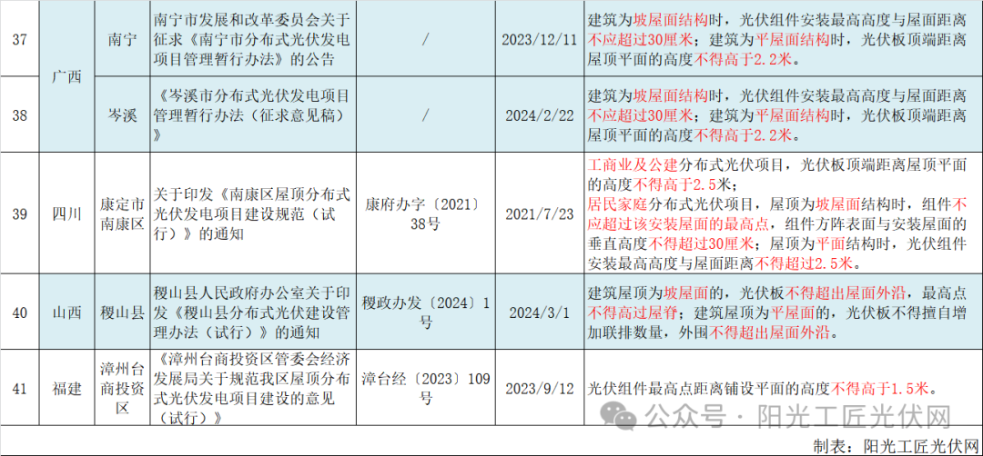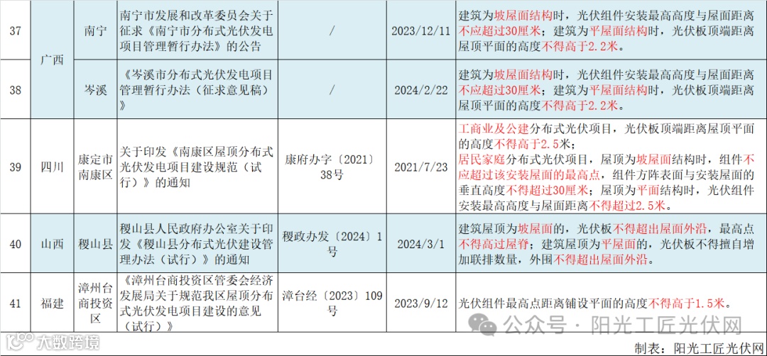 以下为国内41地屋顶光伏安装高度相关政策汇总:
