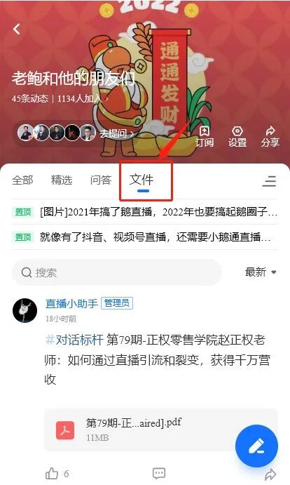 进入圈子-点击「文件」,就能轻松下载直播嘉宾运营实战PPT咯!