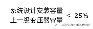 根据国家《光伏电站接入电网技术规定》:小型光伏电站总容量原则上不宜超过上一级变压器供电区域内的最大负荷的25%。如果变压器长期超负荷运行,会导致过热,破坏绝缘体,引起短路、爆燃。