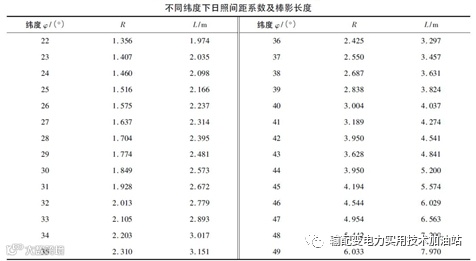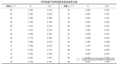 通过计算出不同纬度不同地区的日照间距系数R并制作成速查表,在项目设计中可迅速查找某地9: 00 时的日照间距系数并估算光伏阵列的间距。