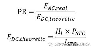 (𝐻_𝑖是测试时间内入射到光伏阵列表面的太阳辐照量(kWh/m2);𝑃_𝑆𝑇𝐶为系统的标称功率(W);𝐼_𝑆𝑇𝐶为标准测试状态的太阳辐照度,即1 kW/m2。)