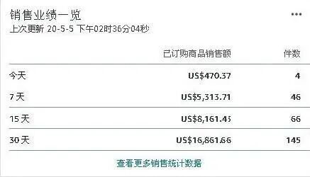 我自己主要做亚马逊运营了几十个店铺,做亚马逊也好几年了,给大家看下我其中的一个店铺收