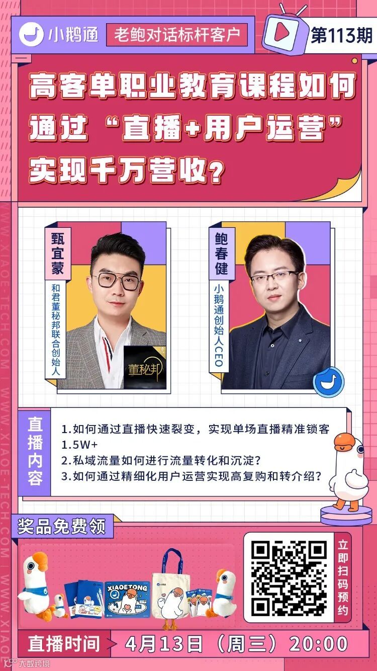 听更多标杆客户干货,今晚八点,老鲍直播间,更有五轮好礼等着你!