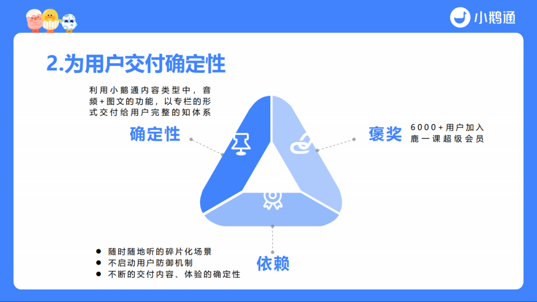 Suppa老师说,只要做到在用户成长路径上,默默提供价值,那么用户增长和转化就是自然的事情。这是鹿一课在用户增长方面的策略: