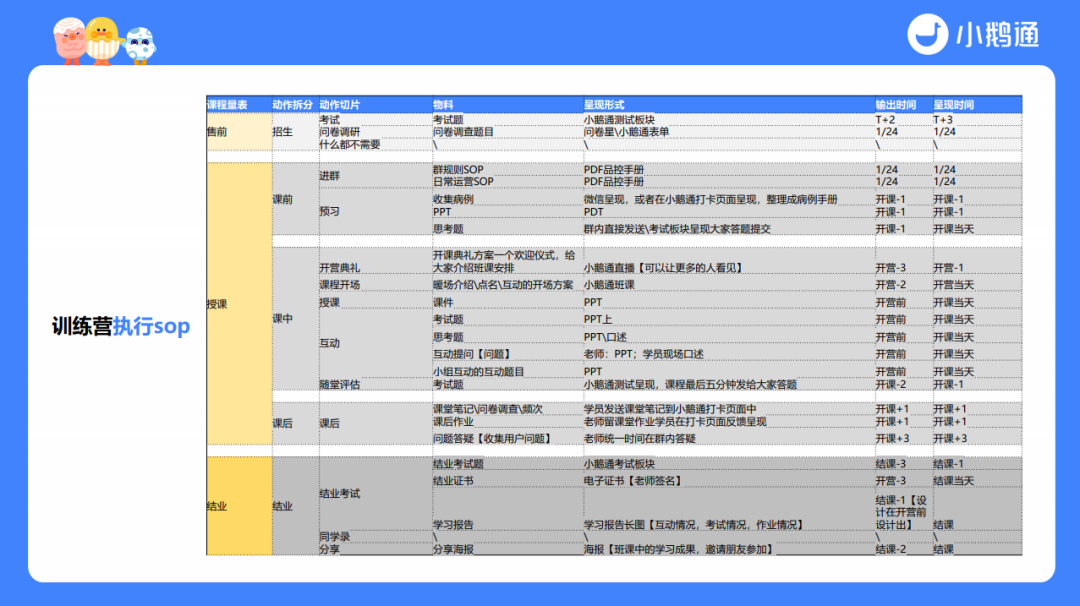 1)用户需求定讲师。首先梳理整个行业涉及到的内容版块全地图,然后根据需求调研确定合作讲师清单
