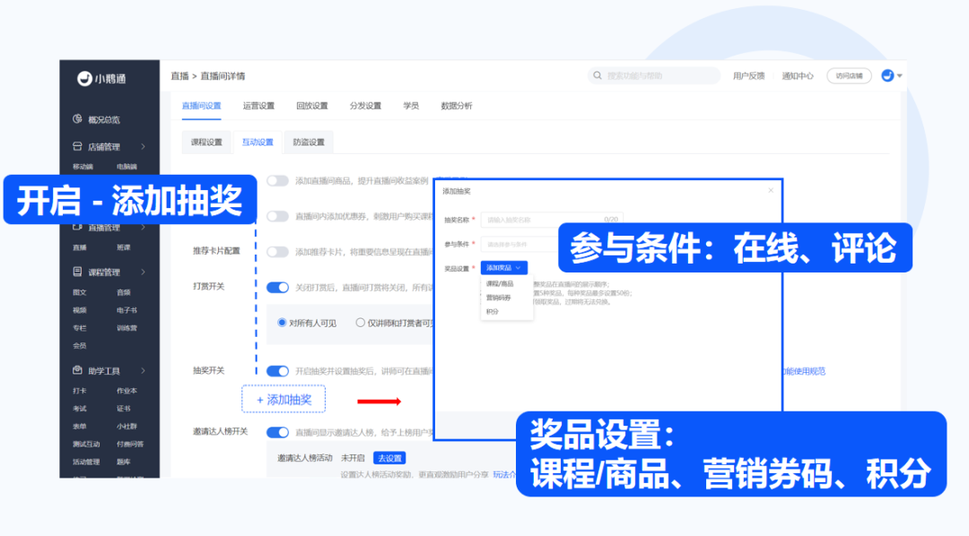 那么,小鹅通的直播抽奖可以搭配哪些功能一起用呢?