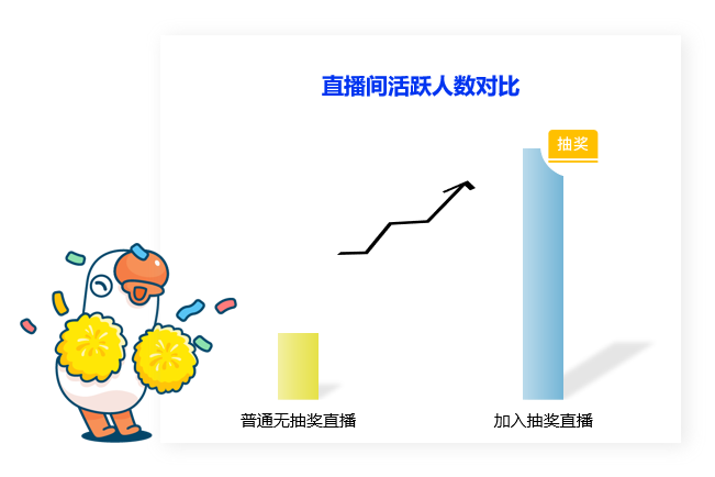 就拿咱们的《来给老鲍提需求》系列直播来说,加入直播互动抽奖后,在线评论、活跃人数提升到了近3倍!